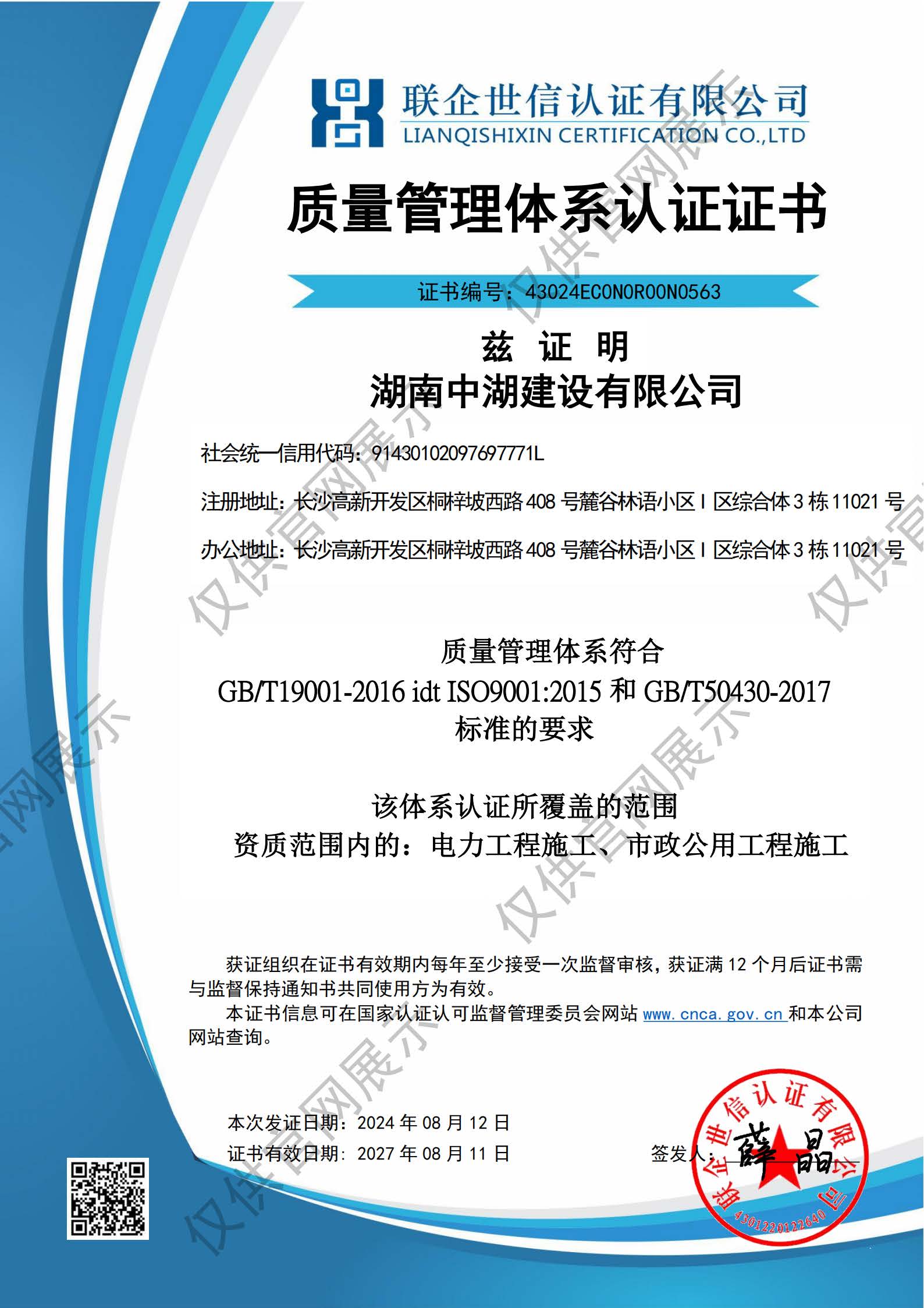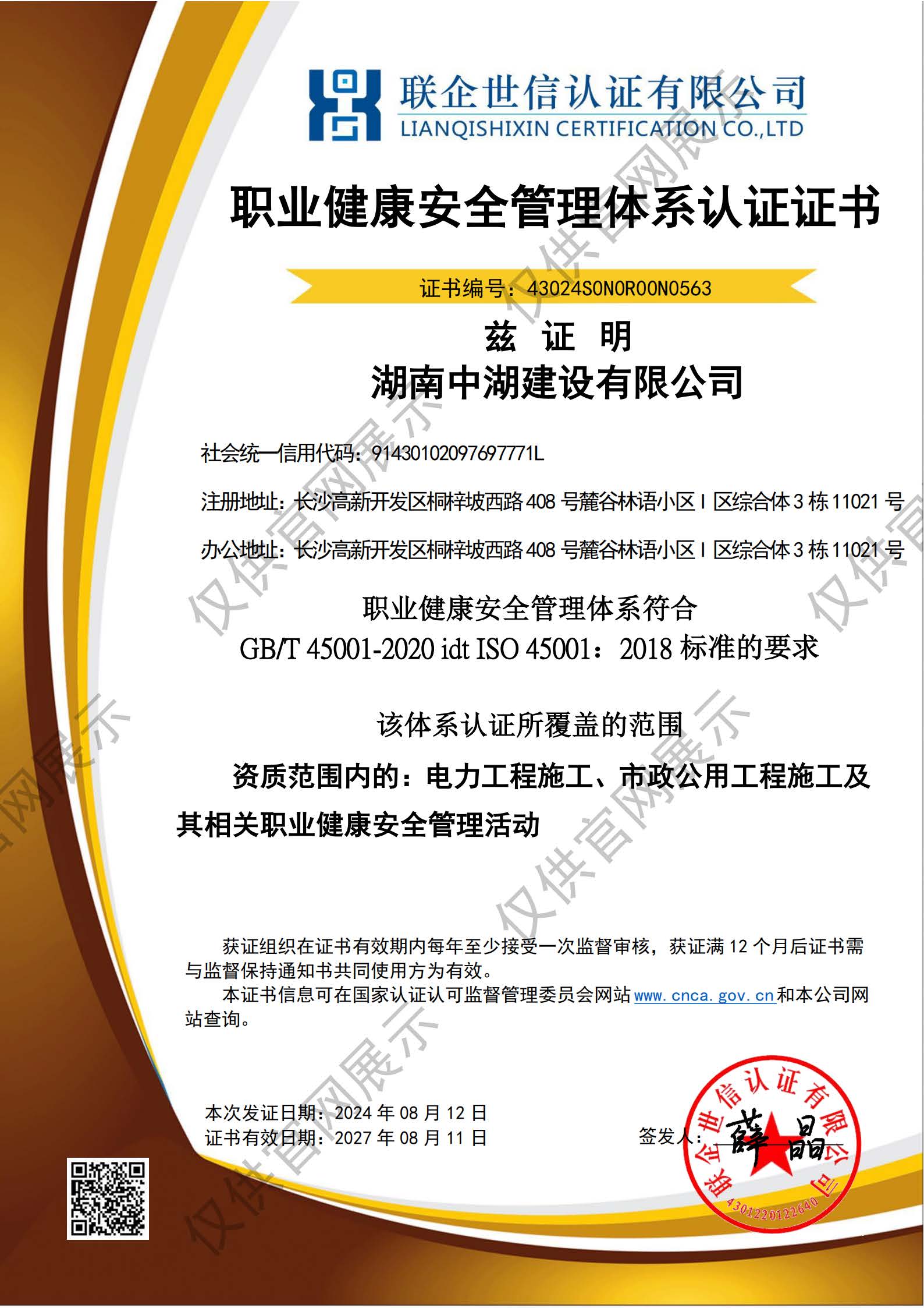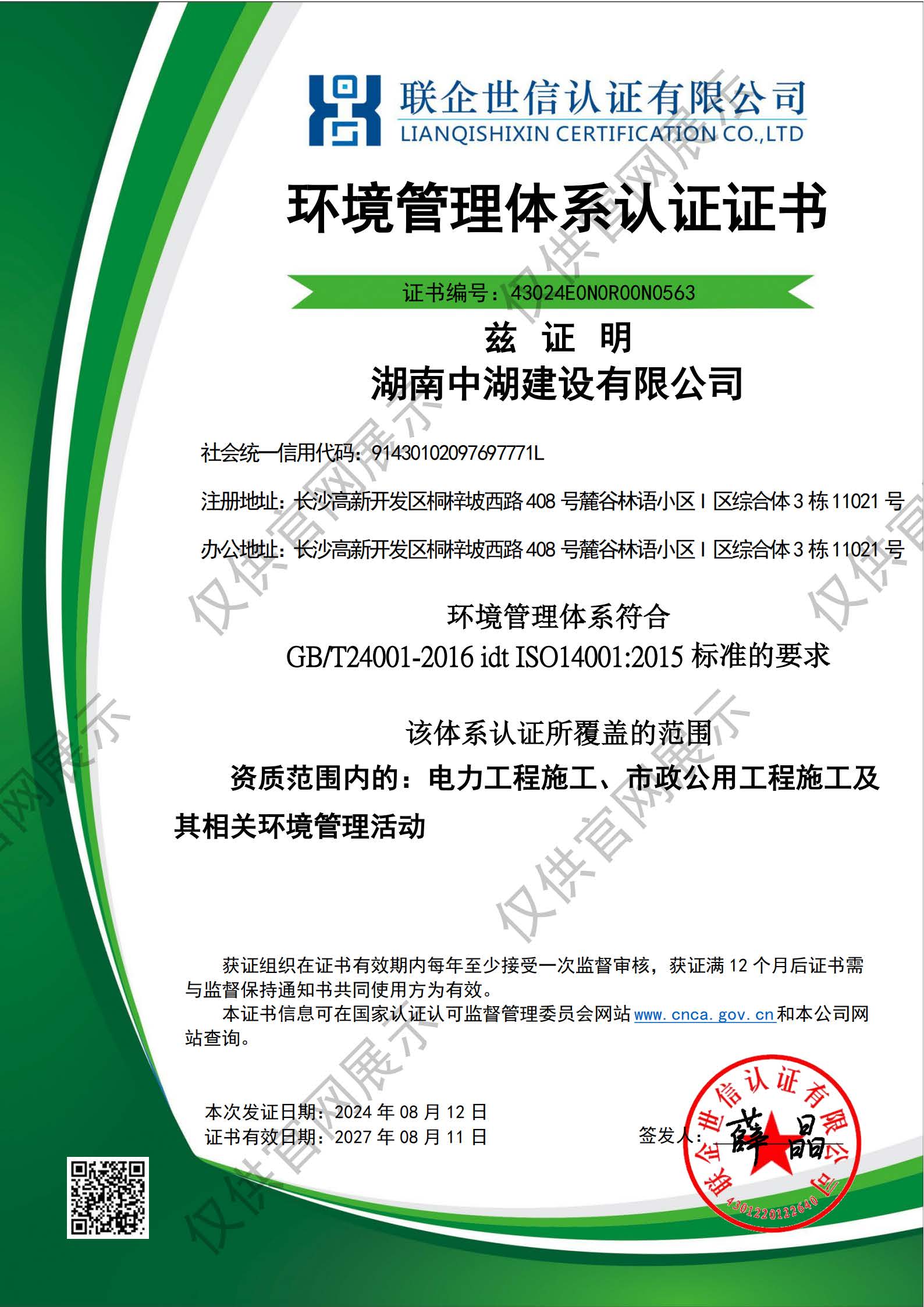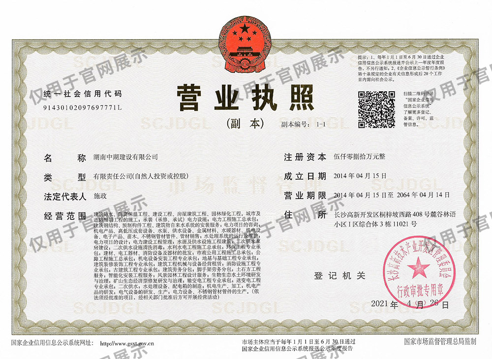 中湖建设承装(修、试)爱体育官方网站设施许可证三级